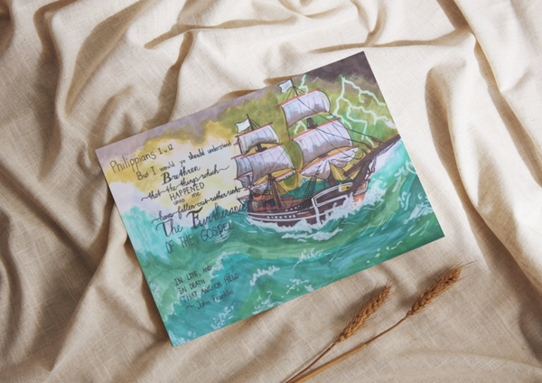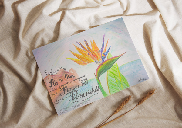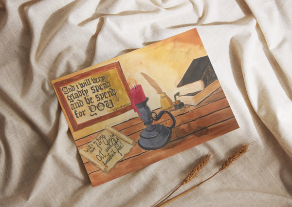 These prints are hand drawn, some with watercolor others with pencil. These prints are made for the furtherance of the gospel; on each print there is a Bible verse what fits with the drawing.